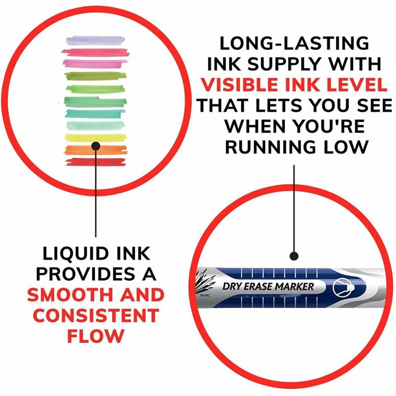 Low odor. Bold writing. Smooth, consistent ink flow. Long lasting visible ink supply. Erases easily.