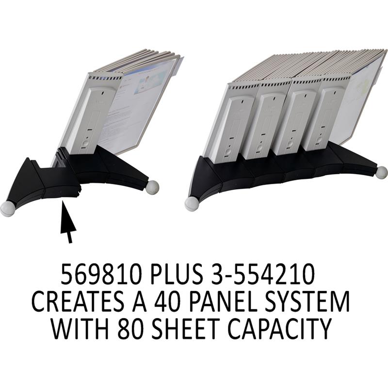 Expands SHERPA®Desk System 5542 Starter Set without limits. Letter size panels with 20 viewing sides. Includes extension bracket, 10 glare-free polypropylene panels and 10 snap-on tabs. Desk stands are not included. Grey panels.
