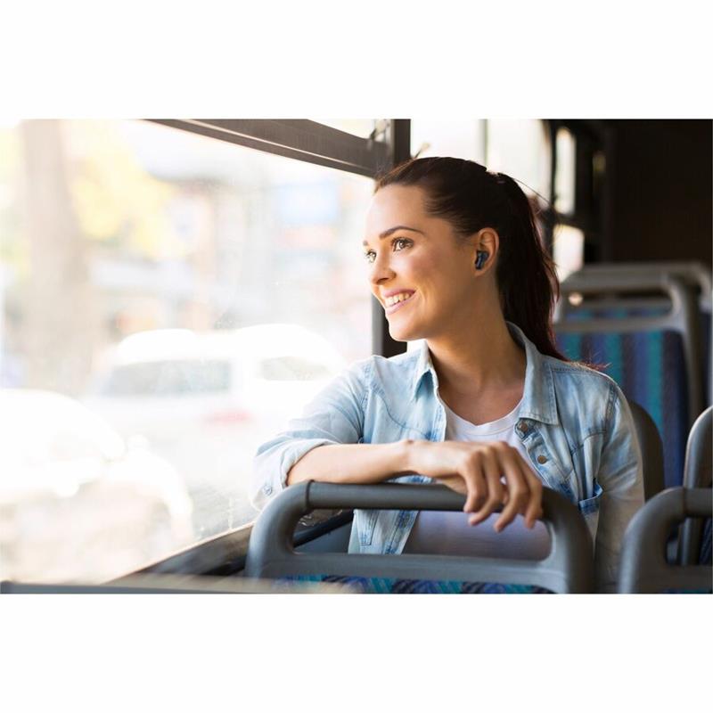 Perfect for when you want to listen without blocking surrounding sound. You can use the left or right earpiece only, and control volume with either one. Included earpieces come in four sizes: L, M, S, and XS. 24-hour battery life. Waterproof and sweat-proof. Soft elastomer material.