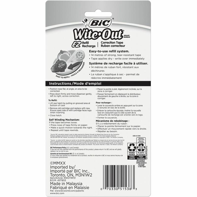 Ruban de type film, plus résistant. Pointe avec guides de correction latéraux. Rechargeable. 5 mm x 14 m.