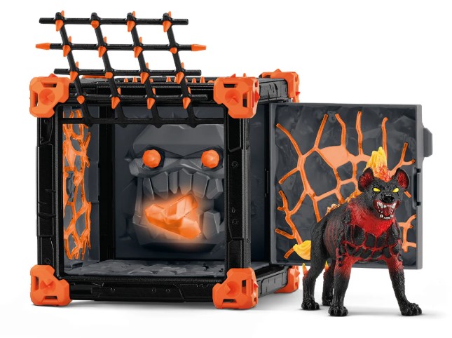 Avec des yeux brillants, la Hyène de Lave se penche d'un air menaçant devant sa BattleCave. Qui osera entreprendre le combat ? Il défend le Cristal Mondial, qui est caché dans la BattleCave. Dans la grotte, vous pouvez voir un masque méchant avec le cristal dans la bouche. Effrayant – et oui, les yeux ressemblent à des flèches tirantes ! Ceux qui osent escalader la BattleCave doivent faire attention, car les barreaux s'ouvrent facilement dans un piège sournois. Une fois capturée dans la BattleCave, la hyène de lave ne vous laissera certainement plus courir aussi vite... Les BattleCaves ELDRADOR® CREATURES transforment la chambre de chaque enfant en une zone d'action ! Qui affrontera cette bataille époustouflante ? Toutes les BattleCaves peuvent être combinées. Toutes les BattleCaves peuvent être combinées. Des tunnels effrayants et des pièges délicats attendent les attaquants. Dans la grande arène, ils pourront alors se retrouver pour le duel final. Quel combat ! Contenu 1x Lava Hyena, 1x cadre de base BattleCave, 1x World Crystal Lava, 1x porte, 2x sol, 1x mur de tir, 2x porte grille, 2x flèche