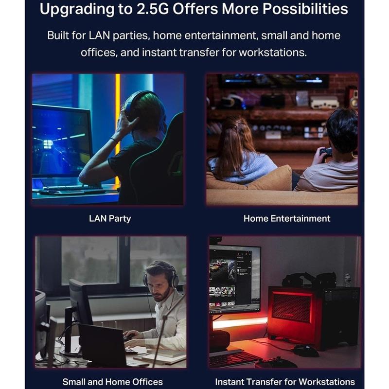 En tant que produit phare 2.5G, un commutateur de bureau 5 / 8 port (avec des ports 5 / 8 × 2.5G) déverrouille votre bande passante multigig et les performances maximales de votre appareil, et fournit une capacité de commutation allant jusqu'à 25 / 40 Gbps. Déverrouiller la largeur de bande multigig de 2,5g et les performances maximales de l'appareil. Puissante performance pour des réunions Lan fluides. Plus jamais de fêtes Lan arriérées. Garantie limitée à vie. Noir.