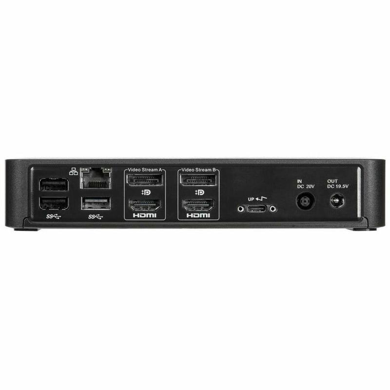 Prend en charge la vidéo 4K UHD @ 60 Hz simple et double via deux ports DisplayPort™ 1.2a ou ports HDMI 2.0. Power Delivery 3.0 jusqu'à 100 W pour les hôtes USB-C. Compatible avec l'hôte Alt Mode (y compris Thunderbolt™ 3 et d'autres modes alternatifs). Utilise le chipset DisplayLink™ DL-6950. 1 port USB 3.2 Gen 2 Type-C (10 Gb/s). 4 ports USB 3.2 Gen 1 Type-A (1 charge rapide). 1 port Gigabit Ethernet. 1 port d'entrée/sortie audio combiné de 3,5 mm. La fente de verrouillage intégrée accueille les verrous de sécurité standard pour protéger l'équipement. Câble hôte détachable USB-C de 1 mètre (C/M vers C/M) avec adaptateur connecté (C/F vers A/M). Garantie limitée de 3 ans.