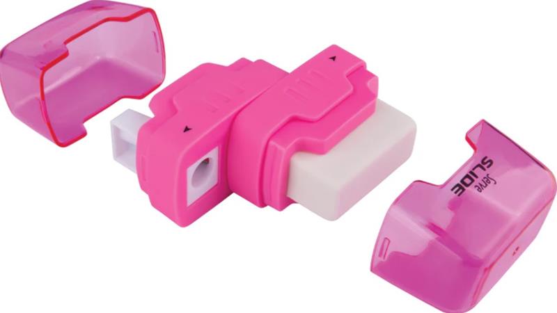 Vous n'arrêterez pas de jouer et d'apprécier ce mécanisme coulissant Une combinaison unique de mécanisme coulissant, de gomme et de taille-crayon Corps doux au toucher Faites simplement glisser la moitié du corps pour ouvrir et fermer pour accéder au trou de l'aiguiseur. Gomme sans poussière et sans trace sur un côté Taille-crayon durable à trou unique de l'autre côté. Grand réservoir à déchets Le capuchon de la gomme garde la gomme propre Le capuchon de l'aiguiseur permet une utilisation propre et maintient les déchets à l'intérieur.